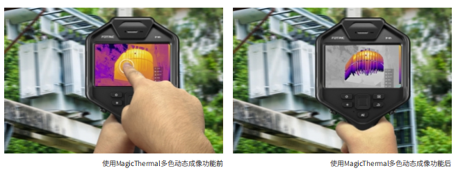能夠在實(shí)時(shí)熱像畫面中,通過觸控的方式呈現(xiàn)目標(biāo)區(qū)域的彩色熱成像,其他區(qū)域則以黑白熱成像顯示。大幅增強(qiáng)復(fù)雜場景中特定目標(biāo)的細(xì)微溫差成像效果,有利于現(xiàn)場診斷溫度變化細(xì)微的缺陷。
