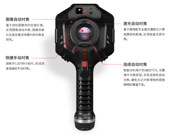 FOTRIC全新打造的TurboFocus智能對(duì)焦系統(tǒng),充分融合圖像自動(dòng)對(duì)焦和激光自動(dòng)對(duì)焦的優(yōu)點(diǎn),并以智能連續(xù)對(duì)焦的方式,保證成像清晰,避免對(duì)焦不準(zhǔn)造成的測溫誤差。