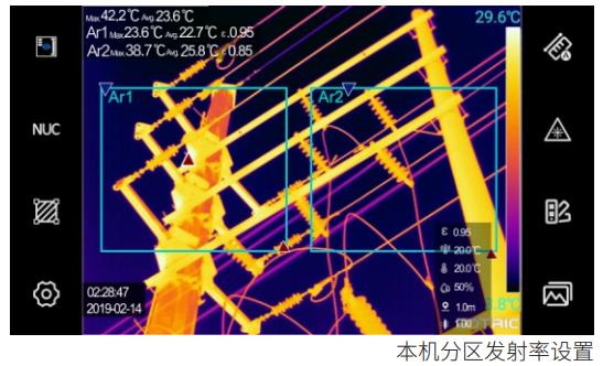 本機設(shè)置各區(qū)域不同發(fā)射率,實現(xiàn)不同材質(zhì)單獨準確測量,保證測溫的準確性。