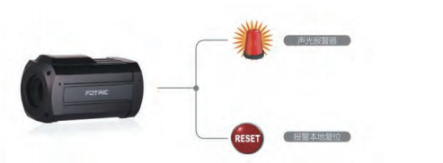 Fotric 800系列圖像型感溫火災探測器支持本地監(jiān)控應用模式,硬件端可以直接輸出繼電器信號進行火災1~4級聲光報警和報警本地復位功能。