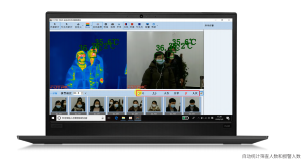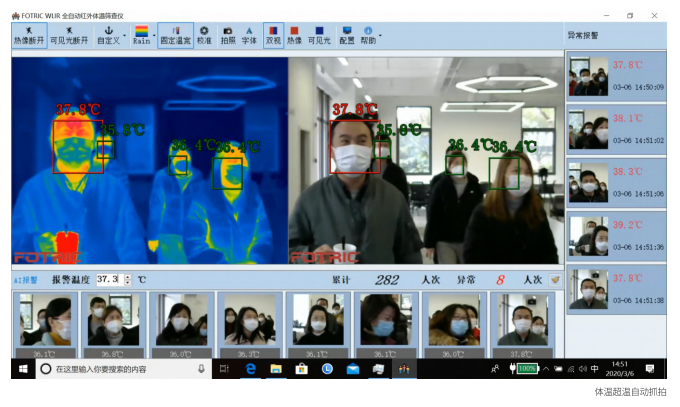Fotric 692Pro全自動(dòng)紅外體溫篩查儀使用WLIR體溫篩查專用軟件,當(dāng)人群中體溫異常人員觸發(fā)報(bào)警后,系統(tǒng)會(huì)自動(dòng)抓拍一張?bào)w溫異常人員的可見(jiàn)光照片,便于后期工作人員的統(tǒng)計(jì)與分析。