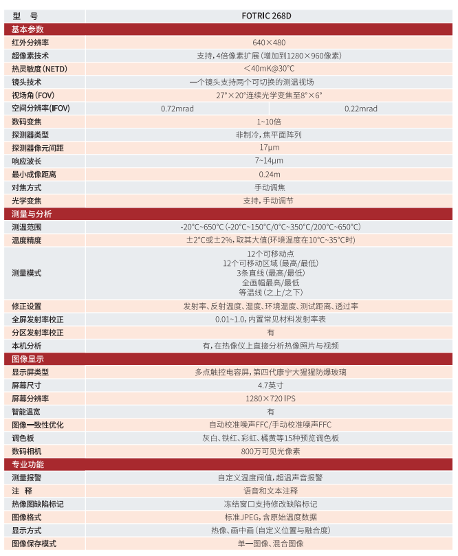 FOTRIC 268D自動識別所選視場角,智能切換算法,在兩個視場角中都能保證全量程士2°℃或士2%的測溫精度。