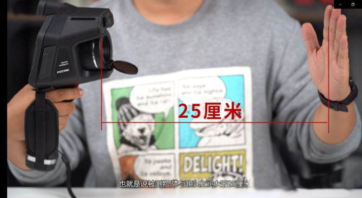 不同鏡頭的最小成像距離不同,我今天拿著的一臺FOTRIC 340X系列云熱像,配備的是標準鏡頭,這個鏡頭的最小成像距離是25cm: