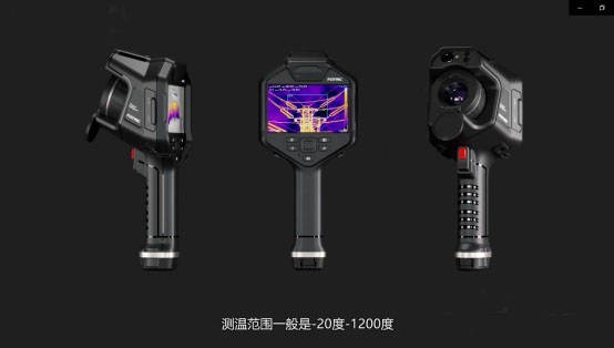 下圖這種手持熱像儀,電力、工業(yè)檢測現(xiàn)場都在用,這類紅外熱像儀測溫范圍在:-20℃-1200℃;