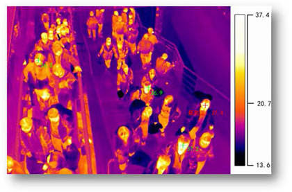 紅外熱成像測溫儀在人流量大、密集型區(qū)域,如學(xué)校、商場、銀行、證券交易所、影院、集市等公共場所;采用篩查型測溫方式,快速實(shí)現(xiàn)對發(fā)熱人員篩查,避免手工篩查造成的人員擁擠和聚集。在接近人流通過的出入口區(qū)域,設(shè)置雙光譜測溫?cái)z像機(jī),鏡頭對準(zhǔn)出入通道,測溫?cái)z像機(jī)設(shè)置一個(gè)接近發(fā)熱(譬如:37.3℃)的報(bào)警閥值,當(dāng)人流中有達(dá)到或超過這個(gè)閥值,后端平臺(tái)報(bào)警提醒工作人員,可以對發(fā)熱可疑人員進(jìn)行二次測溫,既能快速篩查,也可避免工作人員一對一近距離接觸式測溫工作,形成交叉感染的風(fēng)險(xiǎn)。