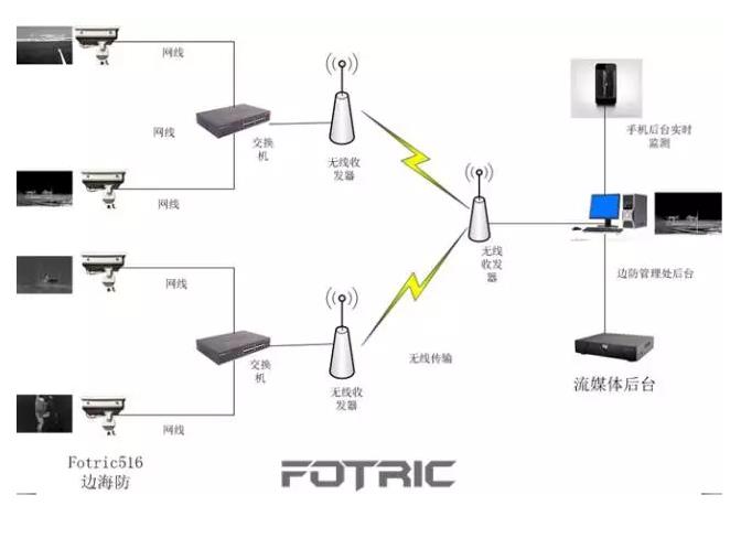 FOTRIC 500系列夜間移動偵測系統(tǒng)集成了高性能熱成像夜視系統(tǒng)和多功能云臺控制系統(tǒng)。該系統(tǒng)的前端采集設備在立桿或者橋體固定,采用光纜或無線進行傳輸,后臺服務器安裝在邊境管理處,可實現對現場設備的實時控制和情況的查詢。
